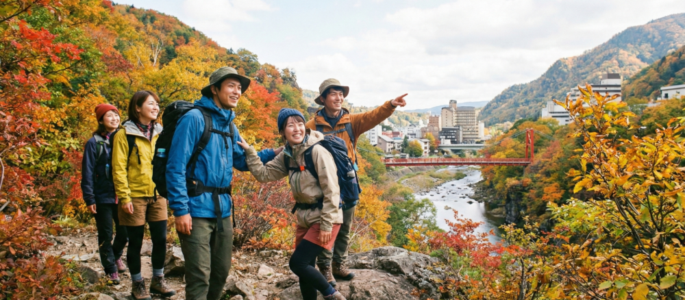 从札幌市中心驾车约1小时!带您前往定山溪地区体验正宗的登山,欣赏四季各异的绝美景色。我们提供适合初学者到高阶玩家的多种路线。